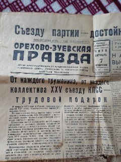 Вот такую газету я нашла у себя. Орехово-Зуевская правда 1975 год.